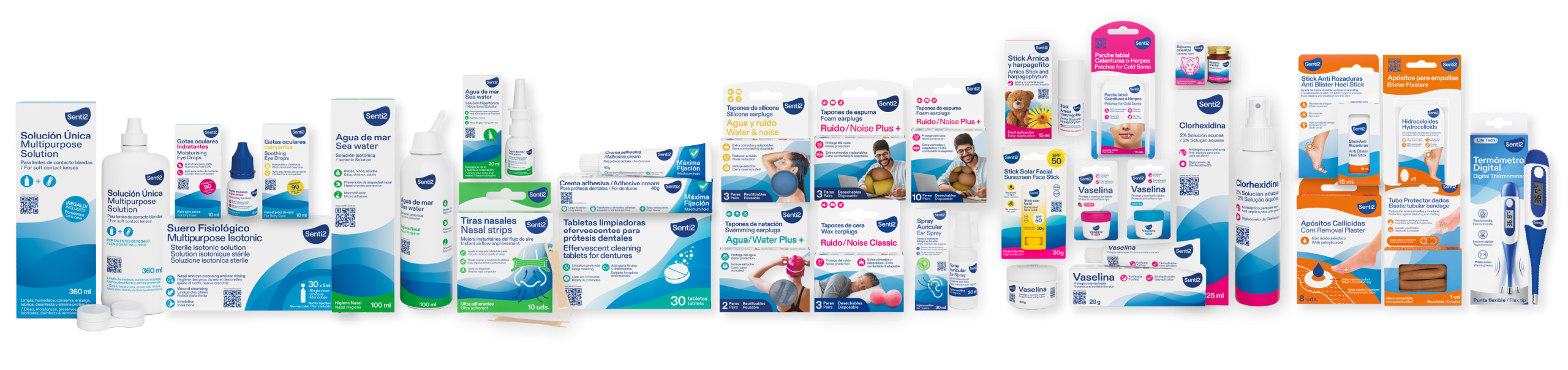Senti2 es nuestra marca propia especializada en productos para el cuidado ocular, nasal, bucal, auditivo y corporal. Sus fórmulas están desarrolladas para ofrecer confort, higiene y protección, adaptándose a las necesidades de uso diario tanto en el hogar como en entornos profesionales.